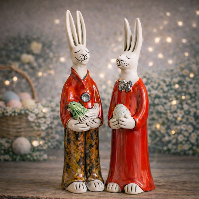 Ręcznie robione Zajączki Wielkanocne z ceramiki mogą być niepowtarzalnymi dekoracjami naszym domu jak i ogrodzie.