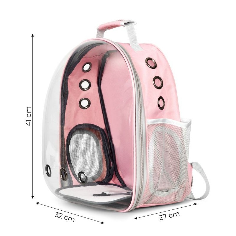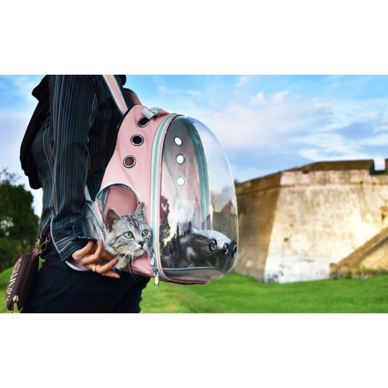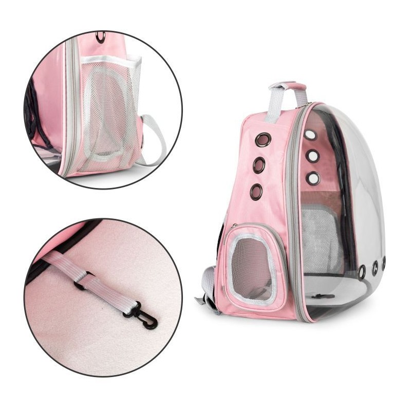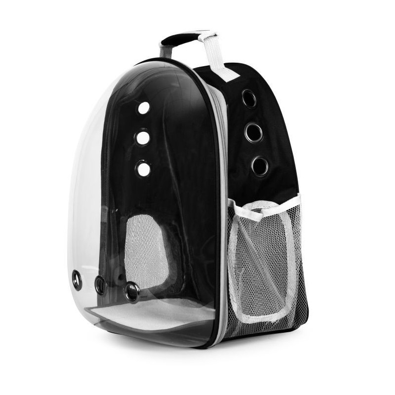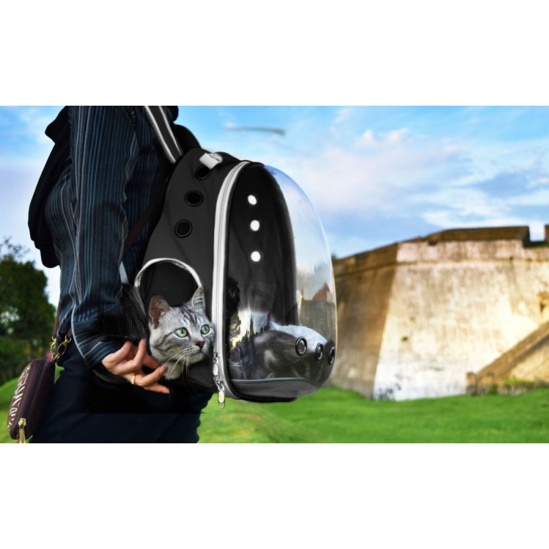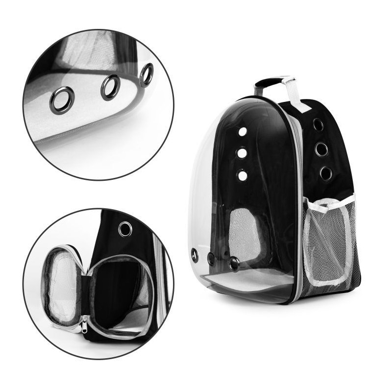 Transporter idealnie sprawdzi się podczas podróży z pupilem. Została ona wykonana z wytrzymałych oraz bezpiecznych dla zwierząt materiałów. Posiada ona możliwość noszenia na plecach. Torba posiada dodatkową kieszeń na akcesoria lub smakołyki. Transporter posiada również otwory wentylacyjne, które zapewniają odpowiedni przepływ powietrza wewnątrz plecaka. Maksymalne obciążenie plecaka to 5 kg.