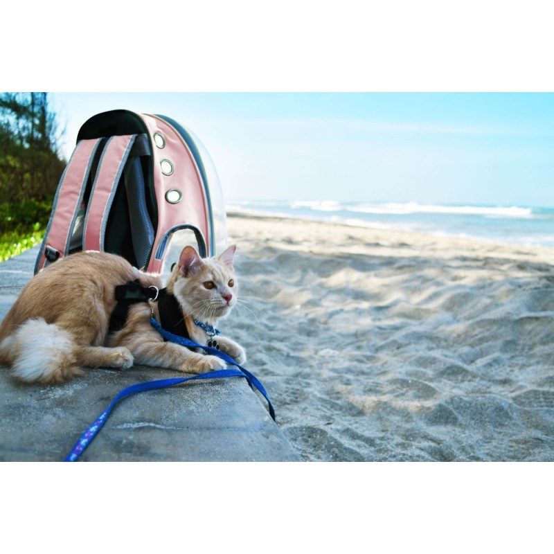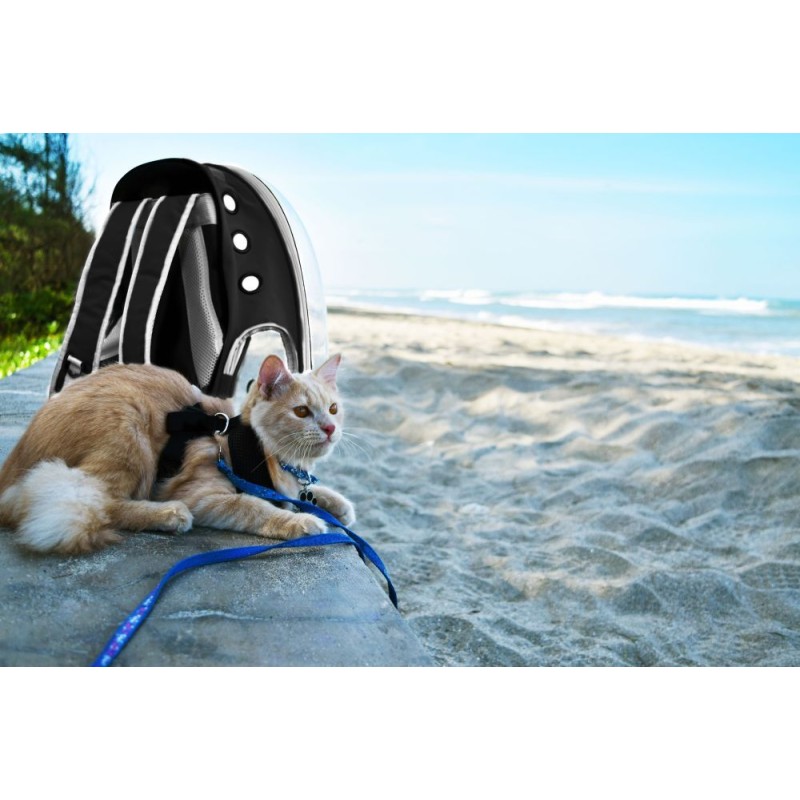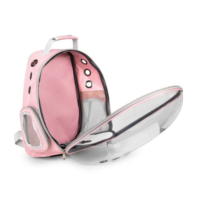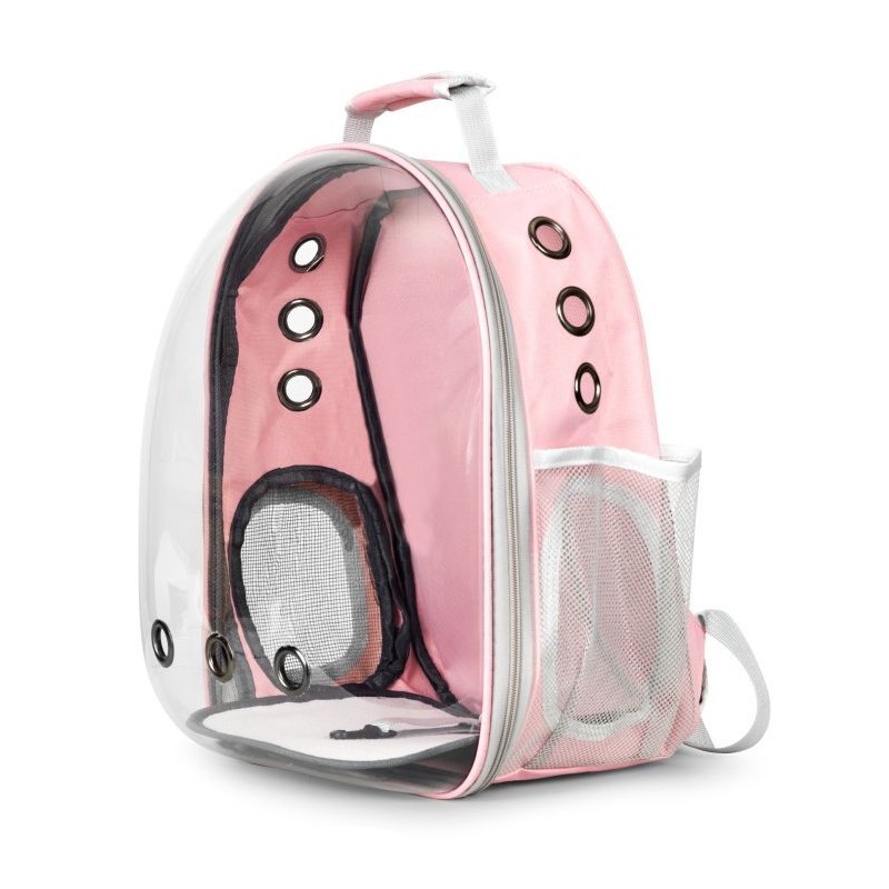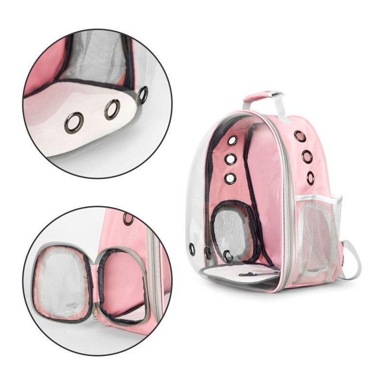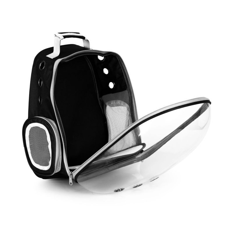 Transporter idealnie sprawdzi się podczas podróży z pupilem. Została ona wykonana z wytrzymałych oraz bezpiecznych dla zwierząt materiałów. Posiada ona możliwość noszenia na plecach. Torba posiada dodatkową kieszeń na akcesoria lub smakołyki. Transporter posiada również otwory wentylacyjne, które zapewniają odpowiedni przepływ powietrza wewnątrz plecaka. Maksymalne obciążenie plecaka to 5 kg.