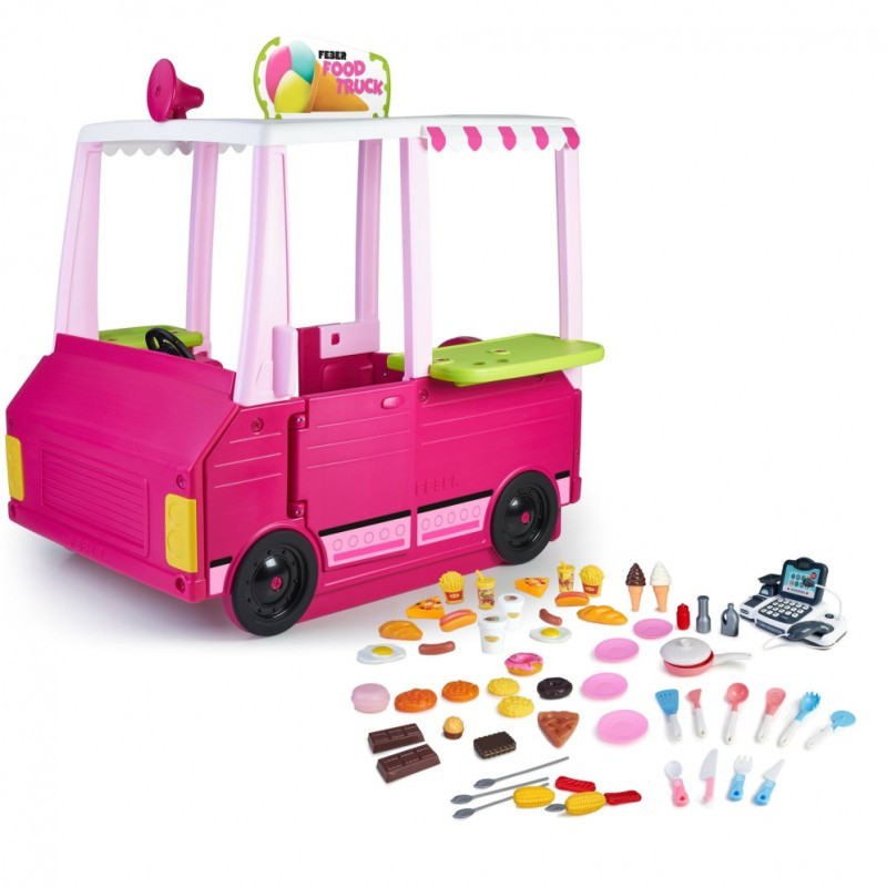 Feber Różowy Food Truck to wspaniała zabawka, która urozmaici spędzanie wolnego czasu Maluchom. Na wakacjach, na piknikach, na imprezach wszędzie spotykamy food trucki, teraz również na własnym podwórku dzieci będą mogły bawić się w przygotowywanie potraw, jako mali kucharze czy klienci, kupujący przekąski z pojazdu. Rozmiar zabawki pozwala na to,że jednocześnie może korzystać z niej kilkoro dzieci. Do zabawki dołączone jest aż 50 akcesoriów. W zestawie dołączone jest m.in. kasa fiskalna, przybory kuchenne takie jak : łopatka, cedzak, chochla oraz artykuły spożywcze m.in. lody, frytki, hot-dog, ciastka, gofry. Produkt wyposażony w system anty-UV, dzięki któremu kolor zabawki nie blaknie oraz zwiększa odporność tworzywa, z którego zbudowany jest produkt Dzięki zabawie dzieci rozwijają kreatywność, wyobraźnie i umiejętności społeczne. Mogą również rozwijać swoje umiejętność manualne oraz zdolność dzielenia się i współpracy z innymi. Produkt przeznaczony dla dzieci od 2 roku życia.