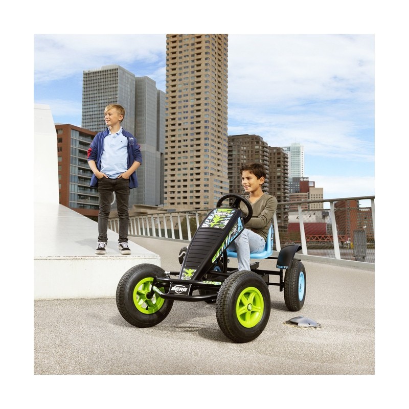 Wspaniały Gokart X-ite firmy Berg to kompaktowy i lekki pojazd, którym wasze dzieci bez problemu pokonają długie trasy! Regulowane siedzenie można ustawić w 6 różne pozycje. Posiada hamulec postojowy dla dodatkowego bezpieczeństwa oraz układ kierowniczy z podwójnym łożyskiem kulkowym. Mechanizm zapewnia dokładność sterowanie i łatwa zwrotność koła poruszają się szybko i płynnie z powodu kół tocznych. Można przechowywać w pozycji pionowej. Idealnie trzyma się drogi i doskonale stabilny dzięki wahliwej osi. Wyrównanie przednich kół może być łatwo regulowane za pomocą drążków kierowniczych. Dodatkowa przyczepność i komfort z powodu opon wypełnionych powietrzem. Osłona łańcucha została zaprojektowana, aby dawać łatwy dostęp do łańcuchów i piasty w celu łatwiejszej konserwacji.