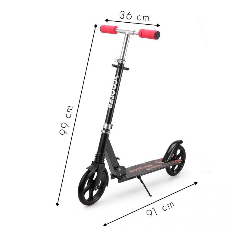 Hulajnoga posiada prosty system składania, który pozwala na zabranie jej ze sobą na wyjazd wakacyjny, wycieczkę do parku i wszędzie tam, gdzie możliwa jest jazda na hulajnodze.