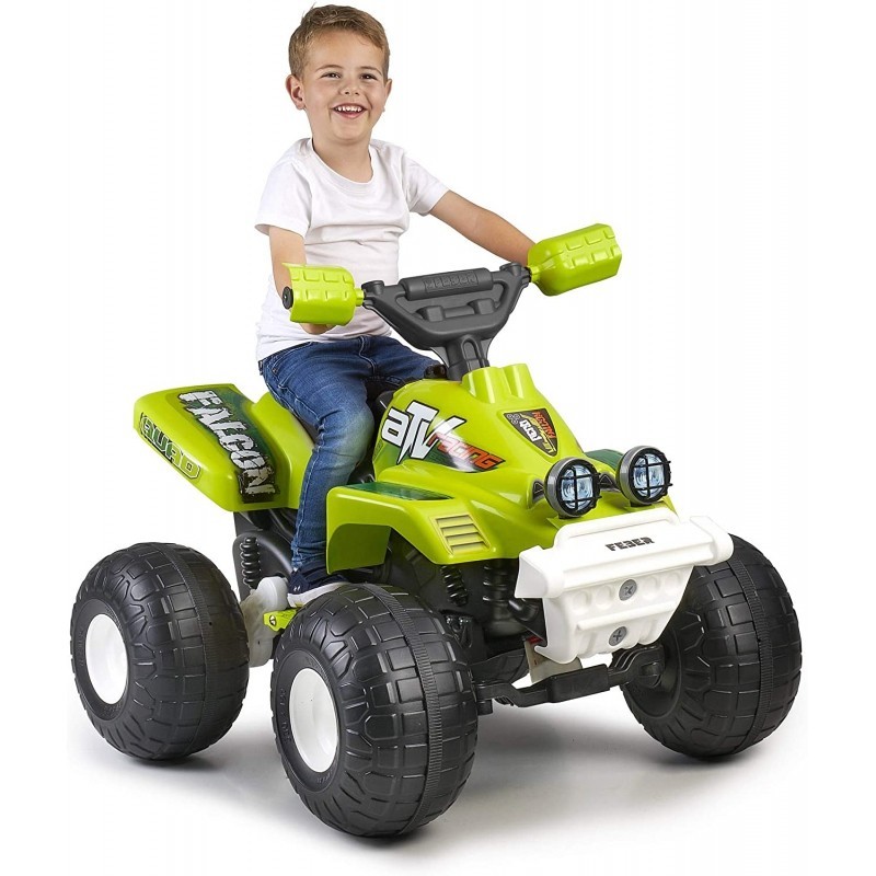 Quad elektryczny Falcon 6V od niezawodnej marki FEBER! Jego solidne koła pomagają poprawić stabilność i osiągają
