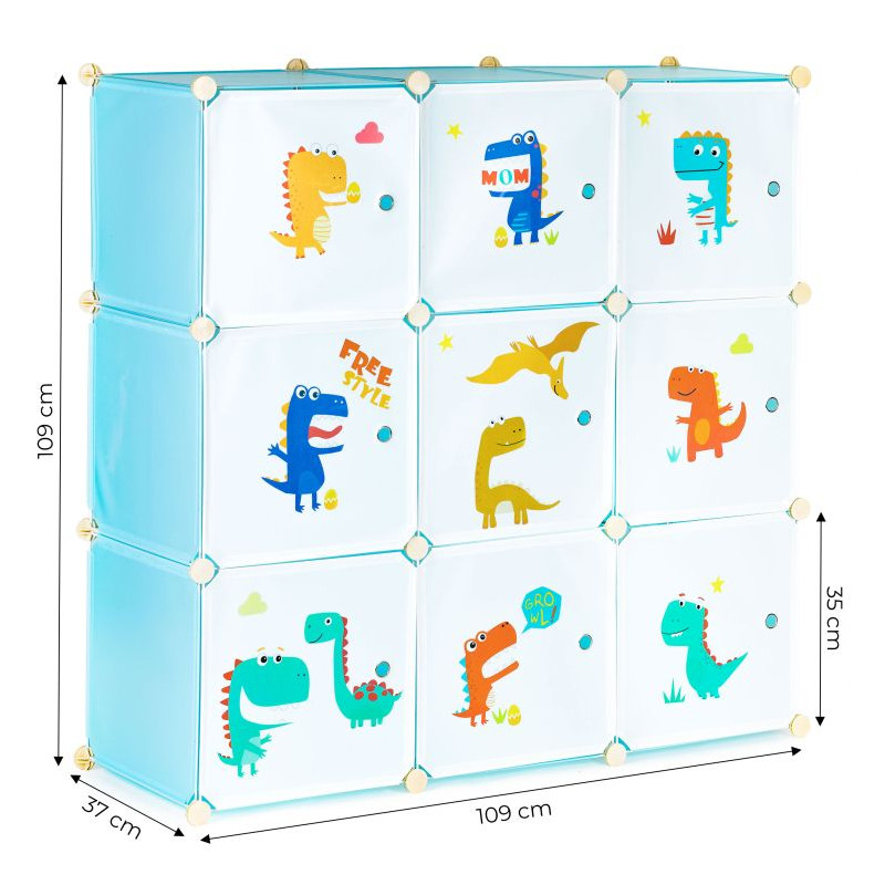 Przedstawiamy szafę regał dla dzieci o wymiarach 109 x 109 x 37 cm, idealną do przechowywania ich ukochanych zabawek, książek i drobiazgów. Ta modułowa szafka składa się z 9 półek (modułów), które mogą pomieścić do 3 kg obciążenia.