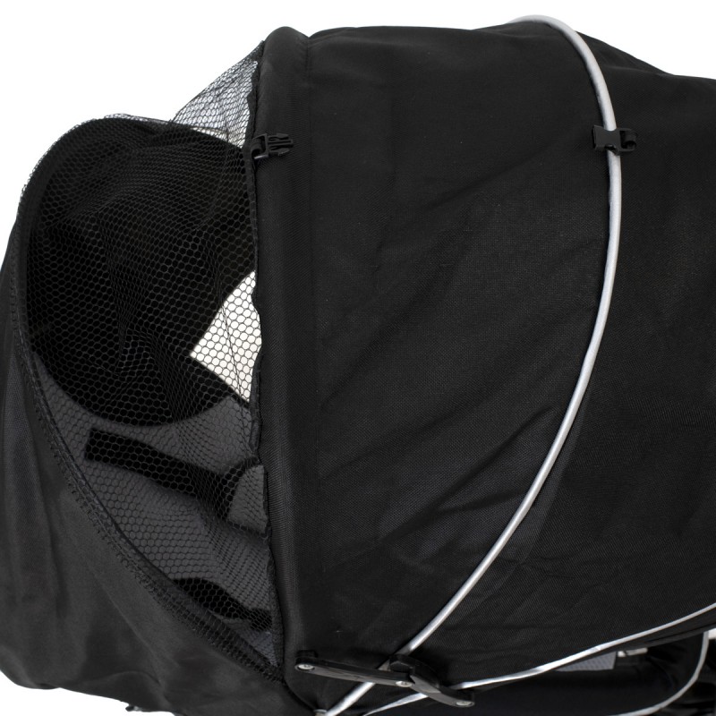 Wszyte błyszczące paski na daszku i poręczy rowerka będą pełniły funkcję delikatnego odblasku.