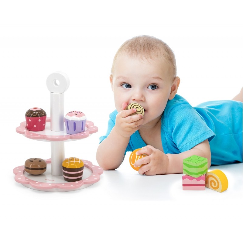 Pysznie wyglądające drewniane ciastka i babeczki będą świetnym uzupełnieniem każdej kuchni. Maluch będzie mógł bawić się w odgrywanie ról – będzie mógł stać się cukiernikiem lub będzie mógł przygotowywać przyjęcia dla swoich laleczek czy też misiów. Taka zabawa będzie świetnie wpływała na rozwój dziecka, na zdolność logicznego myślenia, kreatywność, pobudzi jego wyobraźnię oraz pozytywnie wpłynie na inteligencję emocjonalną. Produkt świetnie sprawdzi się w kawiarence twojego dziecka.