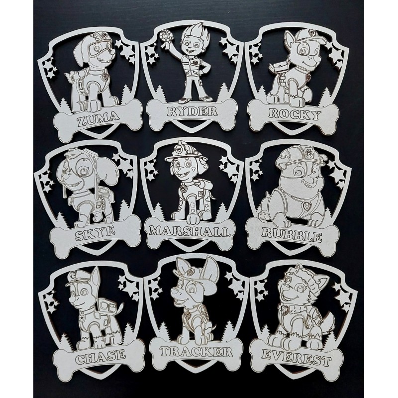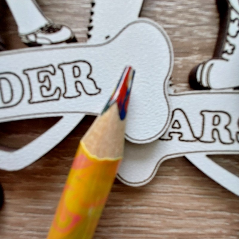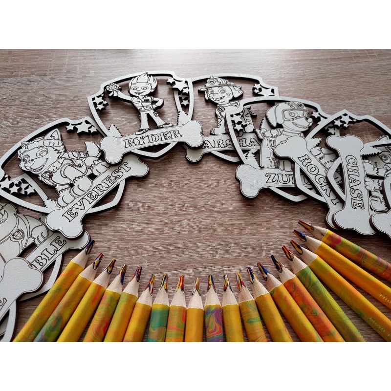 Zawieszka świąteczna Psi Patrol z możliwością kolorowania plus kredka z wkładem wielokolorowym.