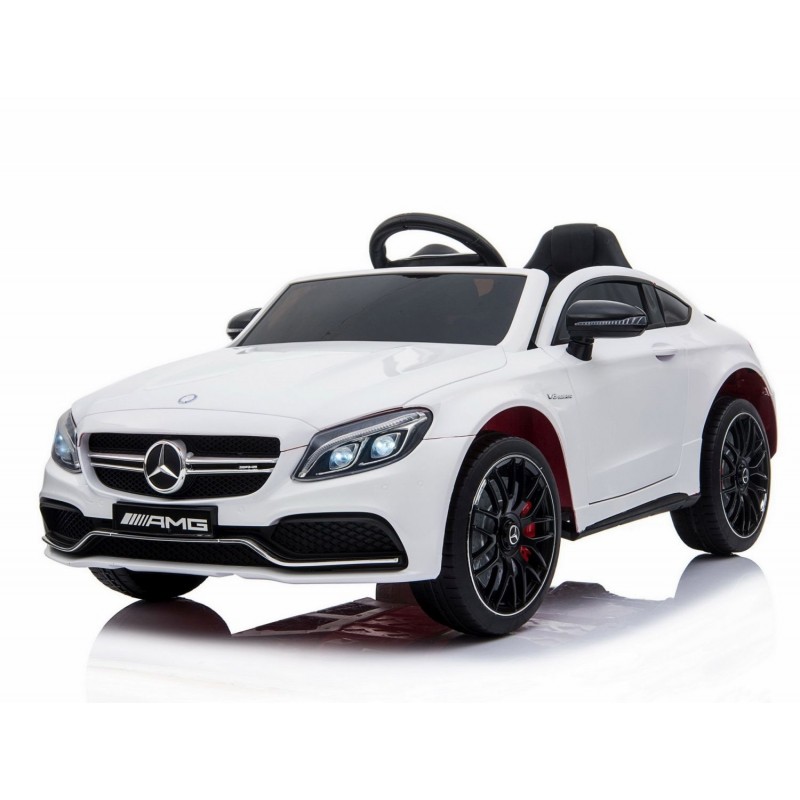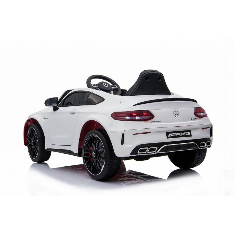 AUTO Mercedes C63 S COUPE w wersji z miękkimi kołami EVA oraz miękkim siedzeniem zasilane na 12 V z napędem na dwa koła zachwyci nie jednego przyszłego kierowcę.