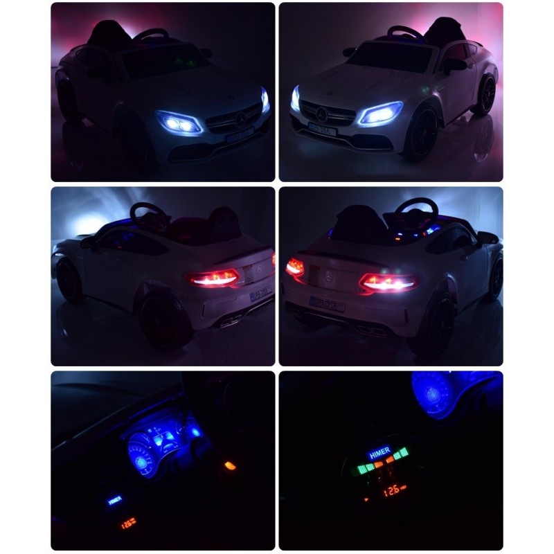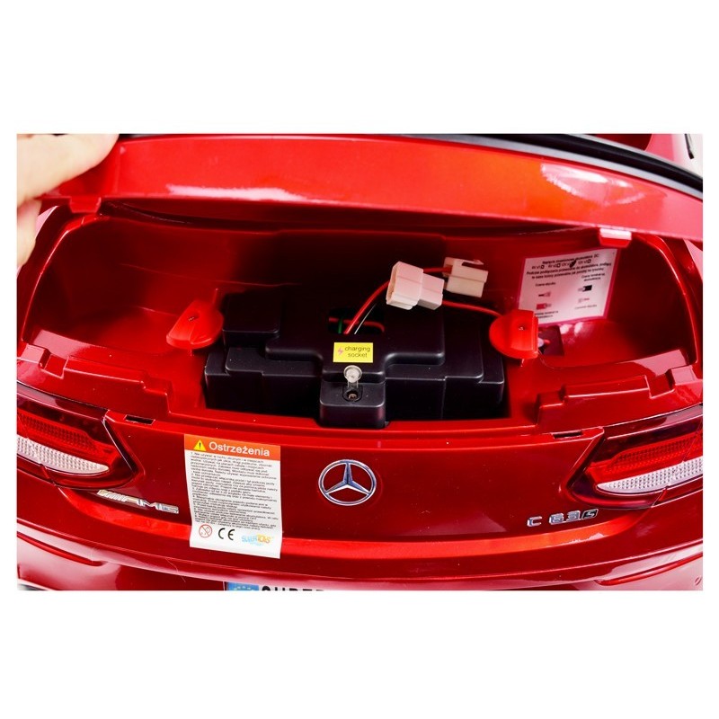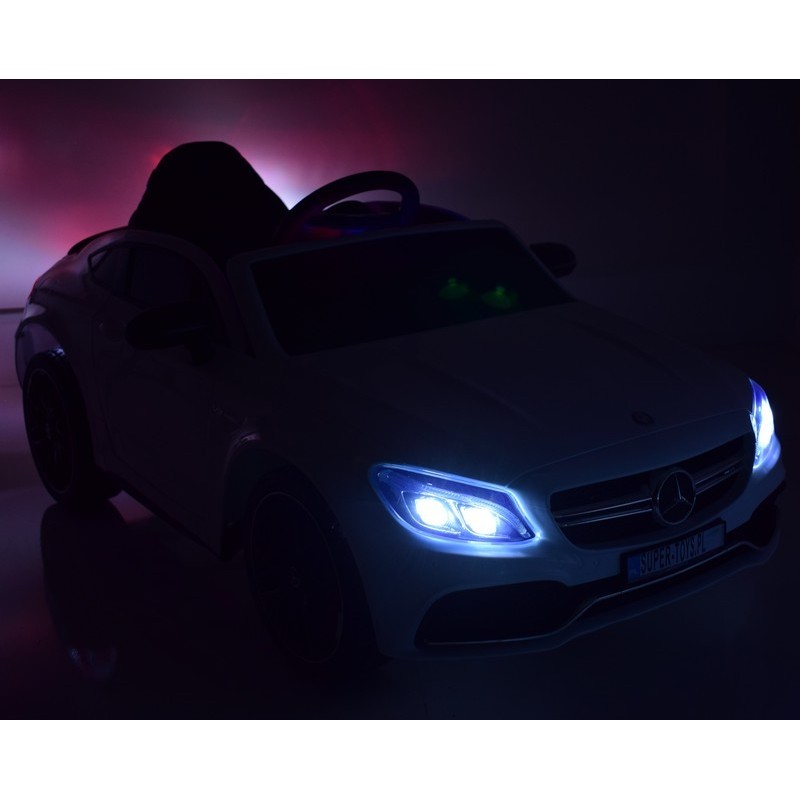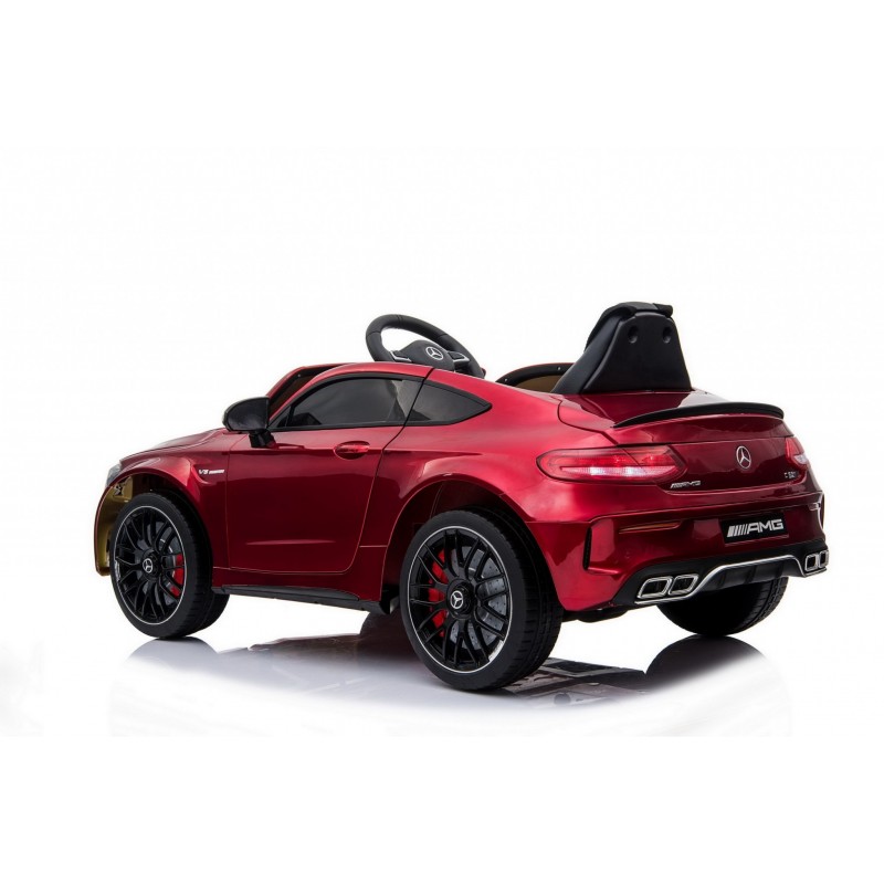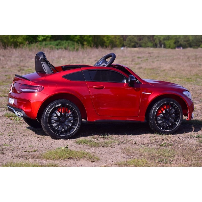 AUTO Mercedes C63 S COUPE w wersji z miękkimi kołami EVA oraz miękkim siedzeniem zasilane na 12 V z napędem na dwa koła zachwyci nie jednego przyszłego kierowcę.