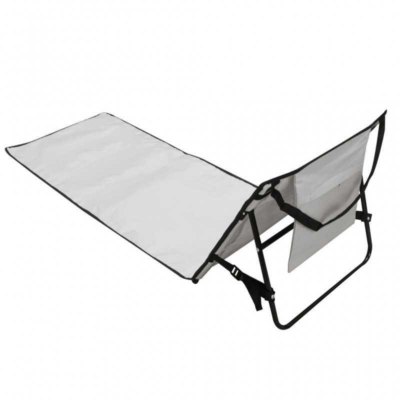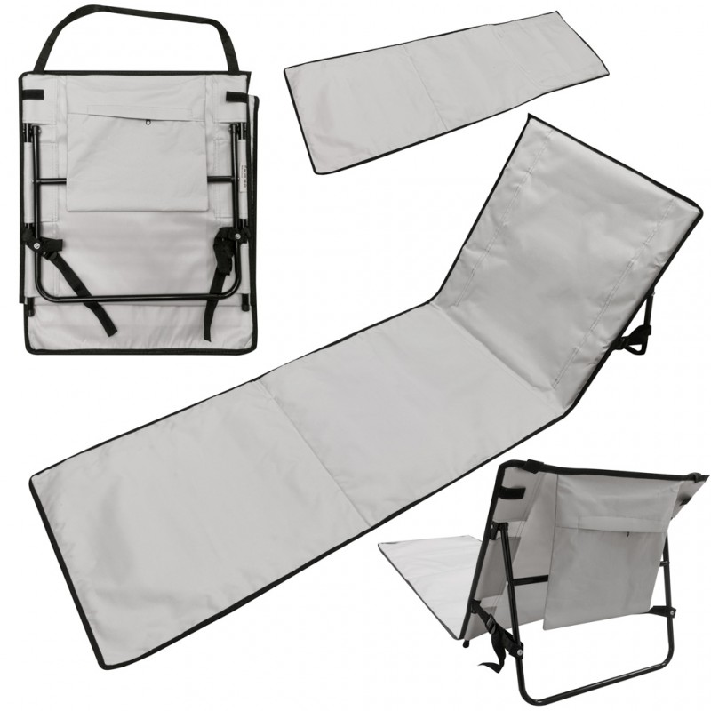 Leżak jest bardzo lekki i po złożeniu zajmuje niewiele miejsca. Dodatkowo posiada wygodny uchwyt ułatwiający przenoszenie oraz praktyczną torbę przymocowaną do oparcia, w której można schować telefon, klucze czy inne drobne przedmioty.
