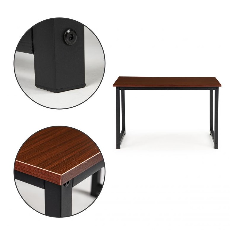 Laminowana powierzchnia blatu jest odporna na codzienne użytkowanie m.in.odporność na zarysowania oraz plamy. Biurko posiada grube metalowe nogi gwarantujące stabilność podczas pracy.