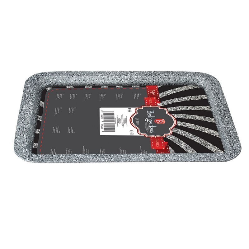 Forma prostokątna (taca) do pieczenia ciasta 38.5 x 27.5 x 1.7cm firmy BERLINGER HAUS z serii GRAY GRANIT. Wykonana z blachy stalowej, pokryta nie przywierającą powłoką granitową w kolorze szarym.