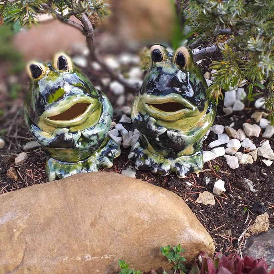 Żabki idealnie komponują się z naturą w ogrodzie.