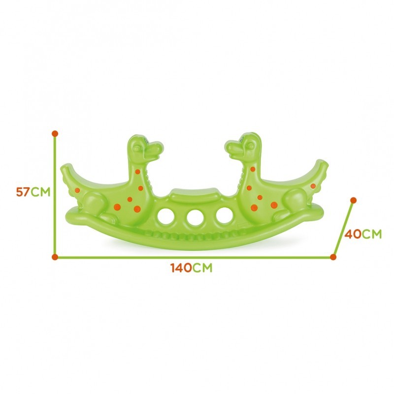 Bujak Dino Wieloosobowy w kolorze jasno zielonym marki Woopie stanie się najulubieńszym dinozaurem twoich dzieci! Z bujaka może korzystać troje dzieci jednocześnie, a nawet jedno będzie się świetnie bawić! Gdy dwoje dzieci buja się jednocześnie to Dino może spełnić funkcje huśtawki równoważnej i dzieci współpracując mogą się huśtać bez końca. Bujak sam w sobie dostarcza wiele korzyści dla dzieci: bujanie uspokaja dziecko oraz rozwija zdolności motoryczne ciała, co jest idealne dla prawidłowego rozwoju. Dodatkowo dinozaury mogą oddziaływać na wyobraźnie oraz kreatywność Twojego dziecka. Możliwe, że potraktuję go jak swojego przyjaciela, o którego będzie dbać. Z produktu można korzystać zarówno w domu jak, i na zewnątrz!