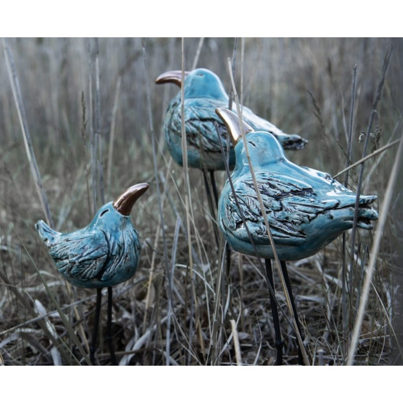 Ptaki na stojaku dostępne w różnych kolorach i wielkościach wykonane w Pracowni Ceramiki Artystycznej.