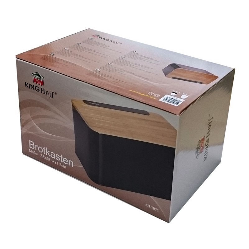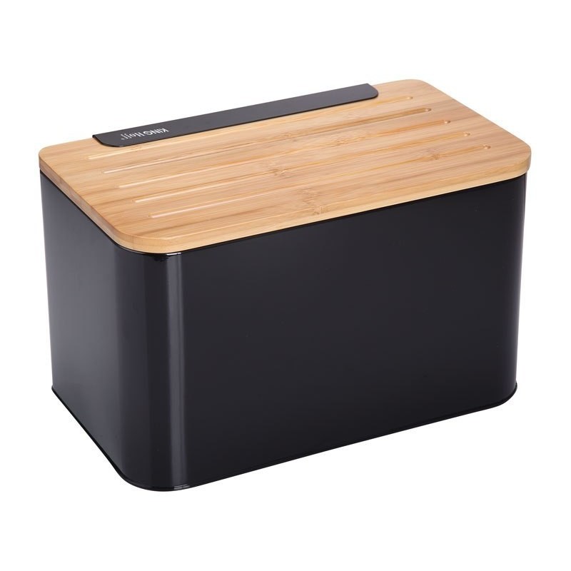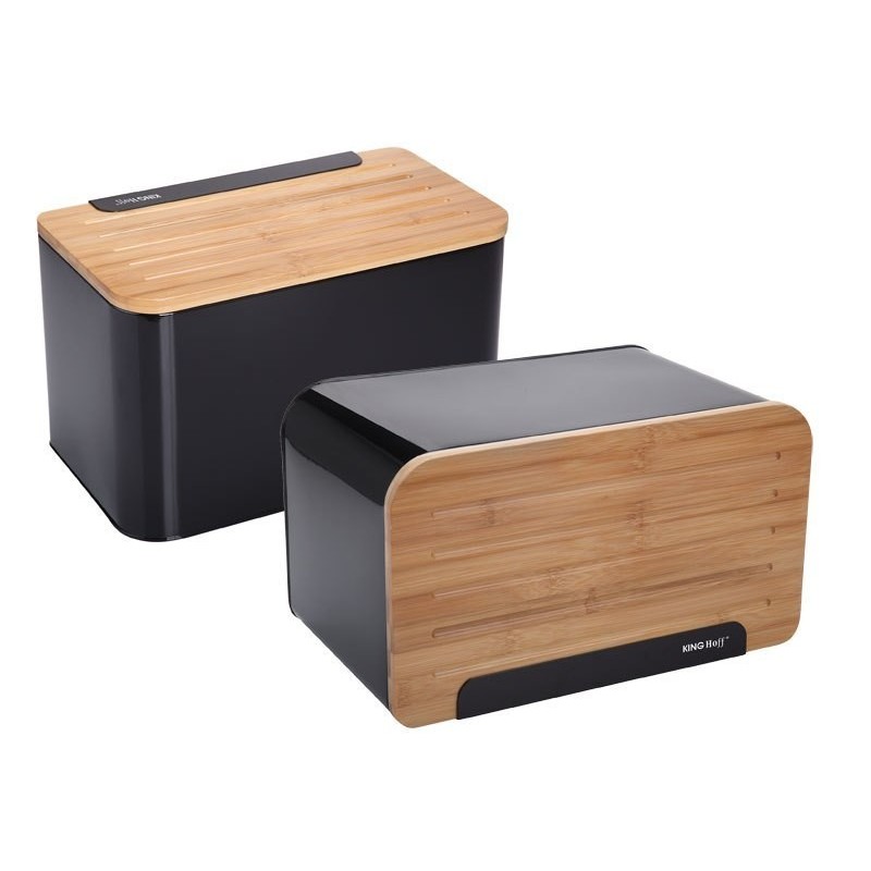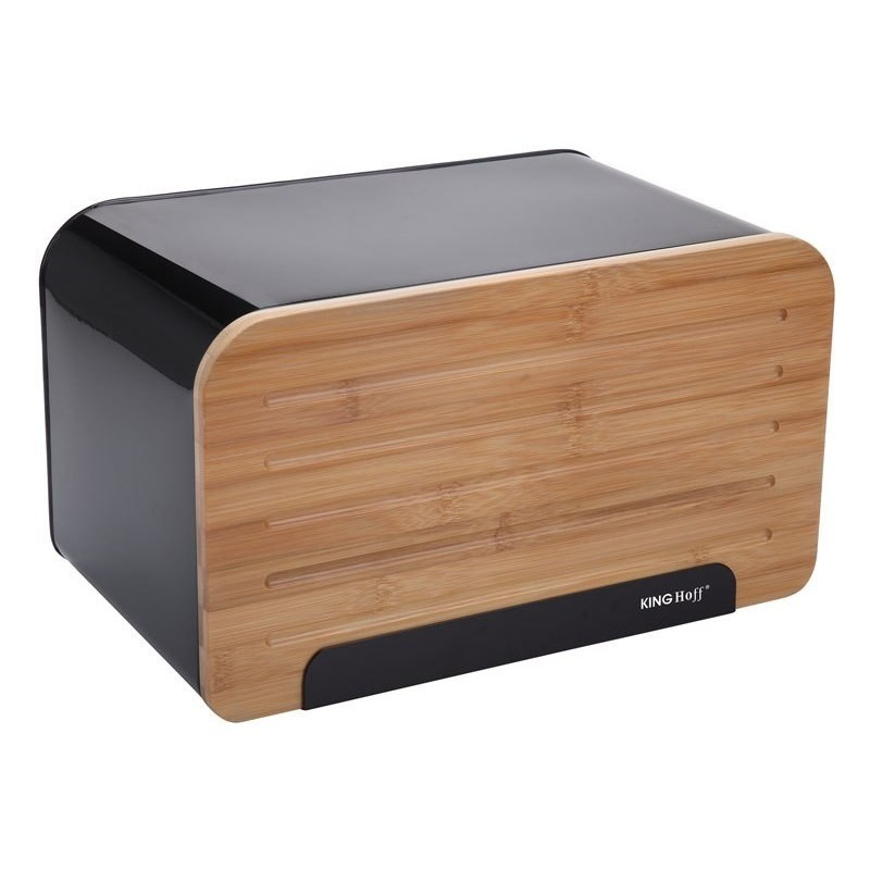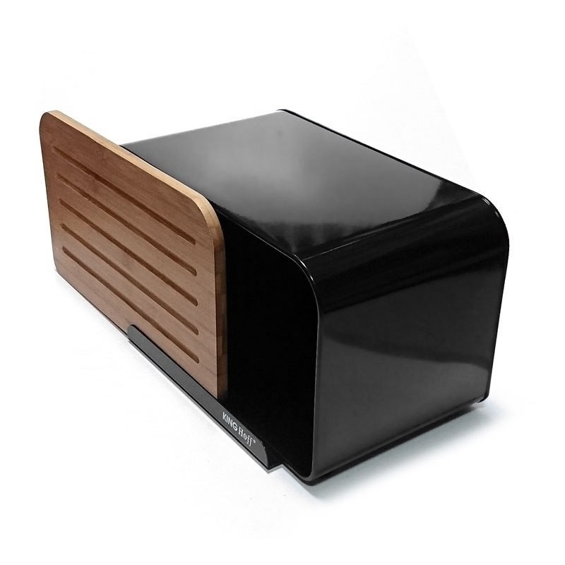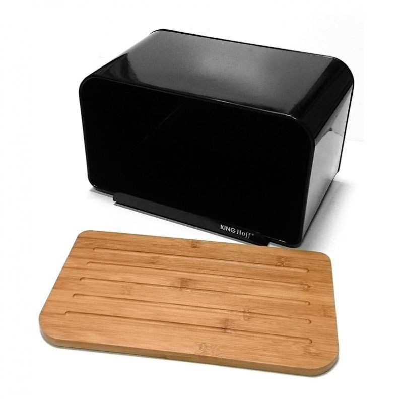Chlebak stalowy KINGHOFF emaliowany w kolorze czarnym z deską do krojenia.