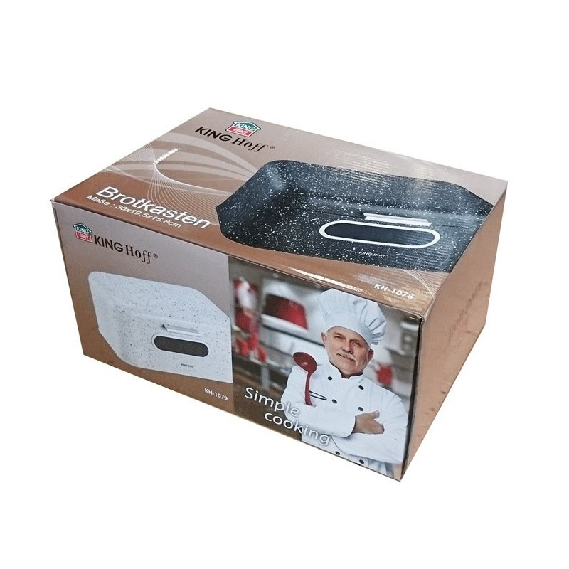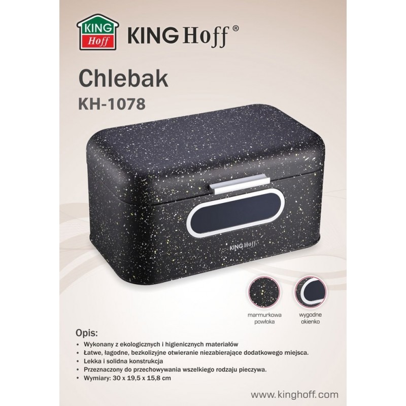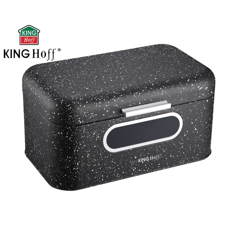 Chlebak stalowy KINGHOFF pokryty emalią o strukturze marmurkowej w kolorze czarnym.