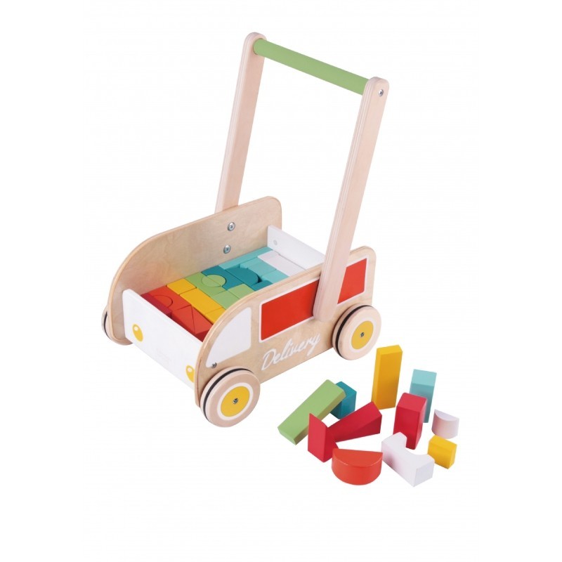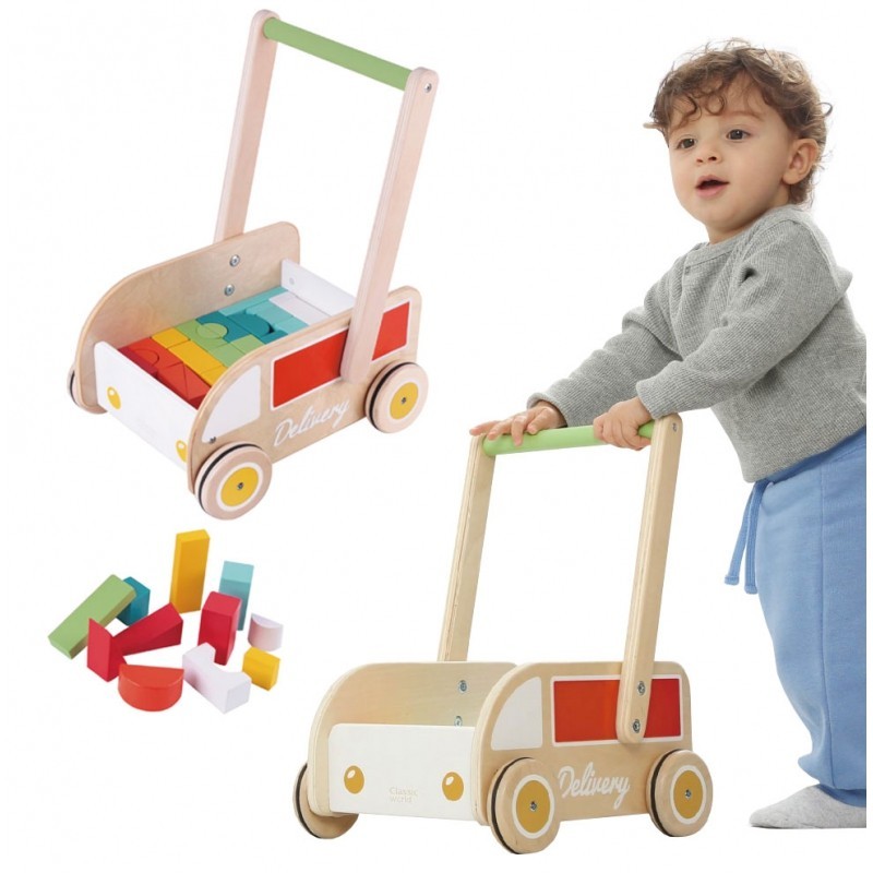 Pchacz chodzik dla dzieci marki Classic World. Składa się z rączki, przy pomocy której prowadzi się zabawkę, oraz koła z gumowanymi krawędziami, dzięki czemu jest ciche i wygodne. Zabawka posiada w swoim zestawie dodatkowo kolorowe klocki , oraz kolorowe elementy pomiędzy jego dwoma elementami.