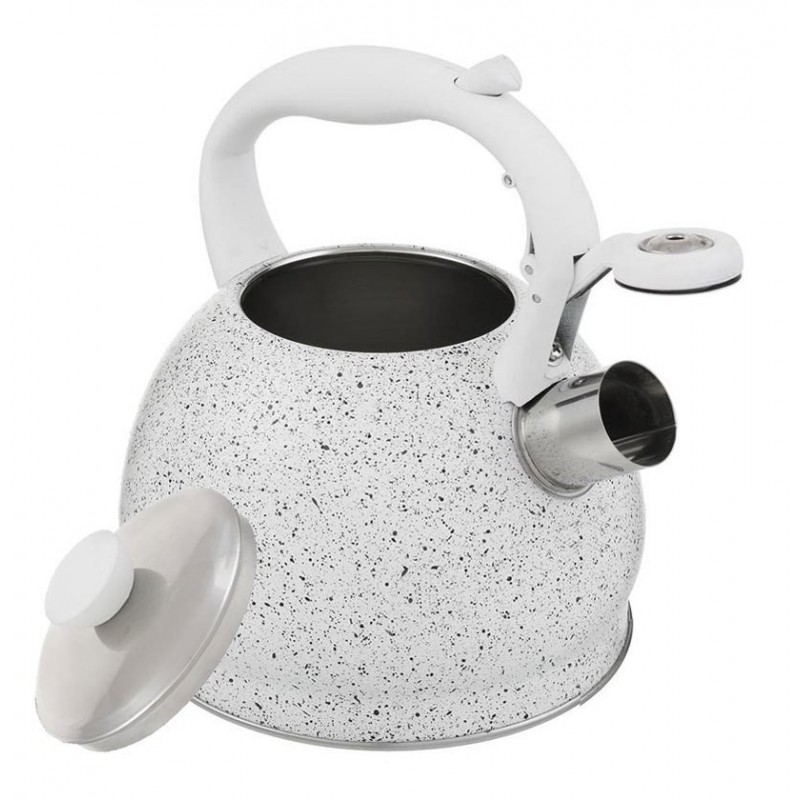 - Wyposażony w odchylany gwizdek oraz rączkę nie nagrzewającą się pokrytą silikonem.