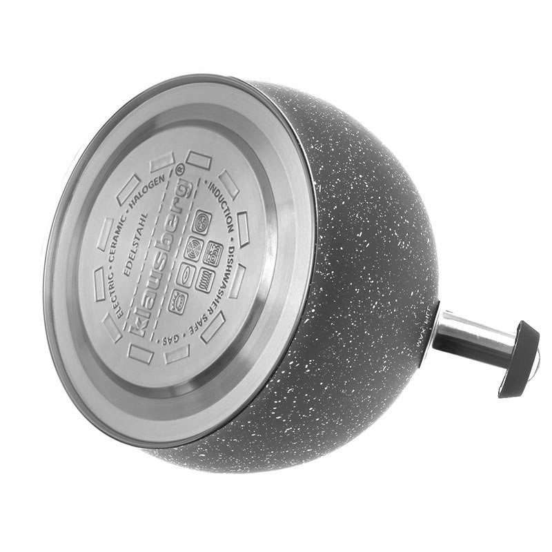 - Wyposażony w odchylany gwizdek oraz rączkę nie nagrzewającą się pokrytą silikonem.