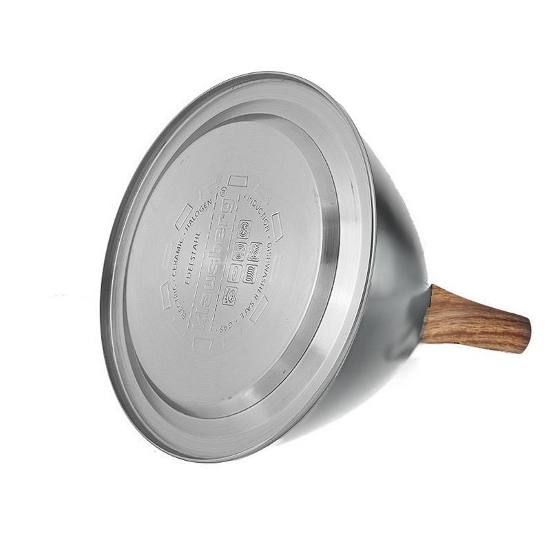 - Nienagrzewająca się, antypoślizgowa rączka imitująca drewno akacjowe.