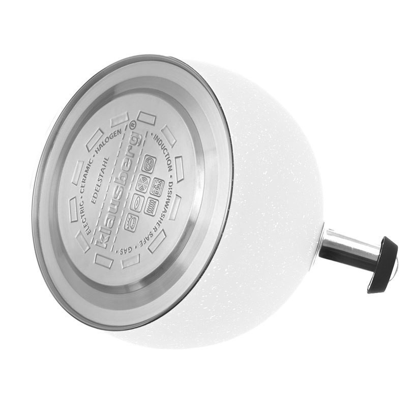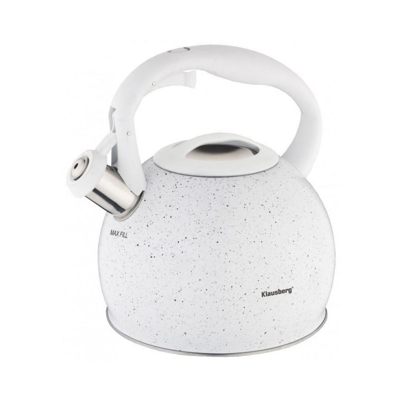 - Wyposażony w odchylany gwizdek oraz rączkę nie nagrzewającą się pokrytą silikonem.