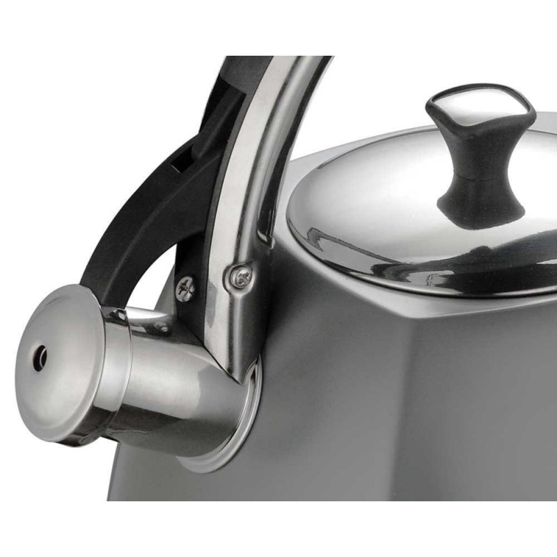 Czajnik 2.2L wykonany z wysokiej jakości stali nierdzewnej. Pokryty szarym lakierem akrylowym.