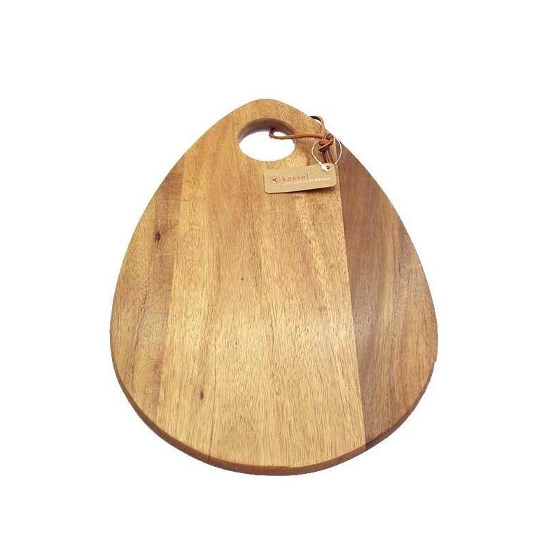 Akacjowa deska kuchenna do krojenia firmy KASSEL. Ekologiczny materiał użyty do produkcji deski zapewnia dużą trwałość, solidność i estetyczny wygląd. Drewno akacjowe jest twarde i wytrzymałe, bardziej odporne na ścieranie i uszkodzenia, a jednocześnie nie tępi noży. Deska może służyć do serwowania serów i wędlin.