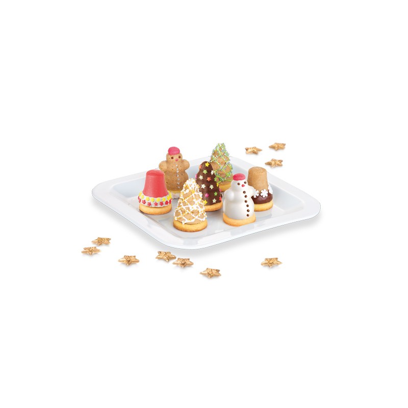 Komplet zawiera 3 otwierane formy z motywami bożnonarodzeniowymi oraz foremkę do robienia otworu z wykrawaczem.
