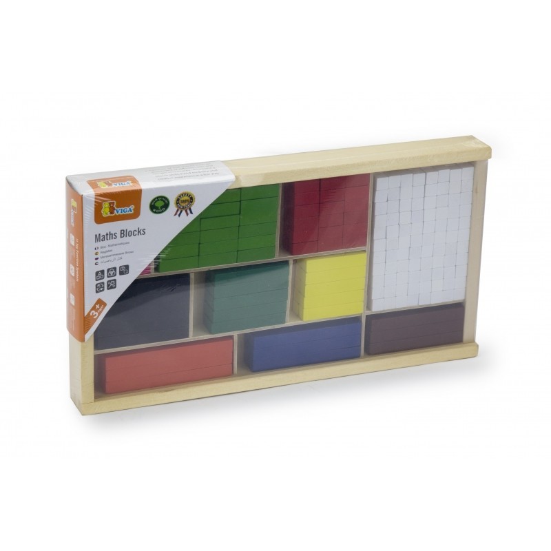 - - W zestawie znajduje się aż 308 kolorowych, drewnianych elementów, które mały uczeń może wykorzystać podczas nauki.