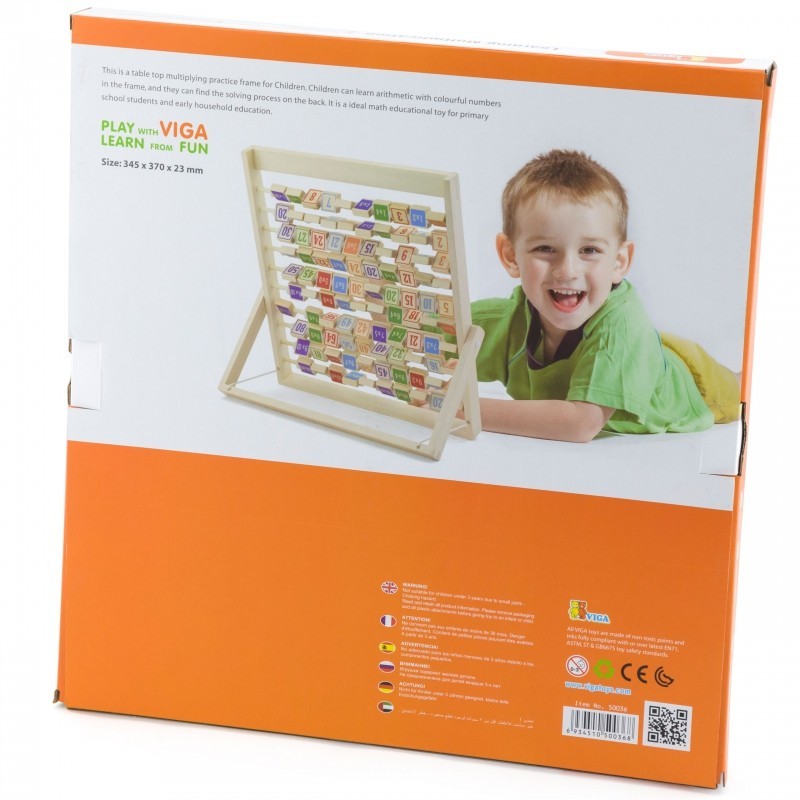 Tabliczka Mnożenia marki Viga Toys to genialna zabawka, która pozwoli na bardzo łatwą i skuteczną naukę. Zabawka składa się z drewnianej ramy, wewnątrz której znajdują się poziome słupki z nawleczonymi na nie drewnianymi płytkami. Na płytkach widnieją działania z zakresu mnożenia do 100. Aby zobaczyć wynik, wystarczy przekręcić płytkę - na rewersie znajduje się iloczyn.