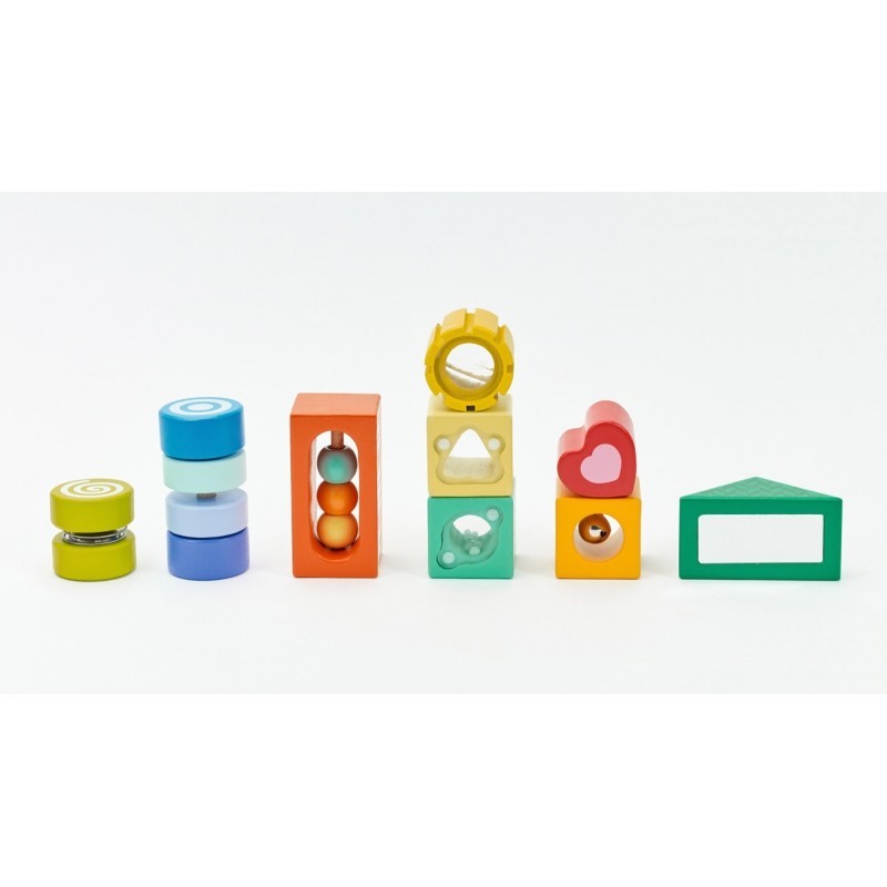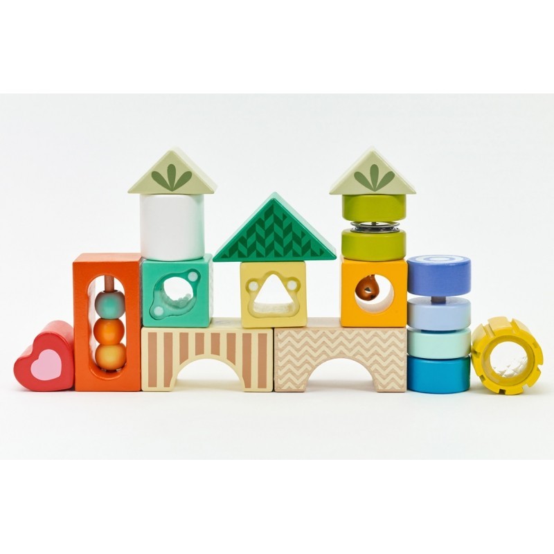Klocki to klasyczne zabawki skutecznie rozwijające intelekt dziecka. Zestaw klocków sensorycznych od marki CLASSIC WORLD wspiera zabawę konstrukcyjną, dążenie do celu, kreatywność, rozwiązywanie problemów i podstawy STEM. Klocki wspierają dodatkowo zabawę ekspolaracyjną. Dziecko, które dostaje takie różnorodne klocki, studiuje je, analizuje ze wszystkich stron. Taka zabawa wspiera świadomość przestrzenną, naukę kolorów, kształtów, rozmiarów i funkcjonalności. Dla łatwego przechowania, klocki zostały umieszczone w drewnianej ramce by bezpiecznie czekały na następną lekcję przez zabawę.