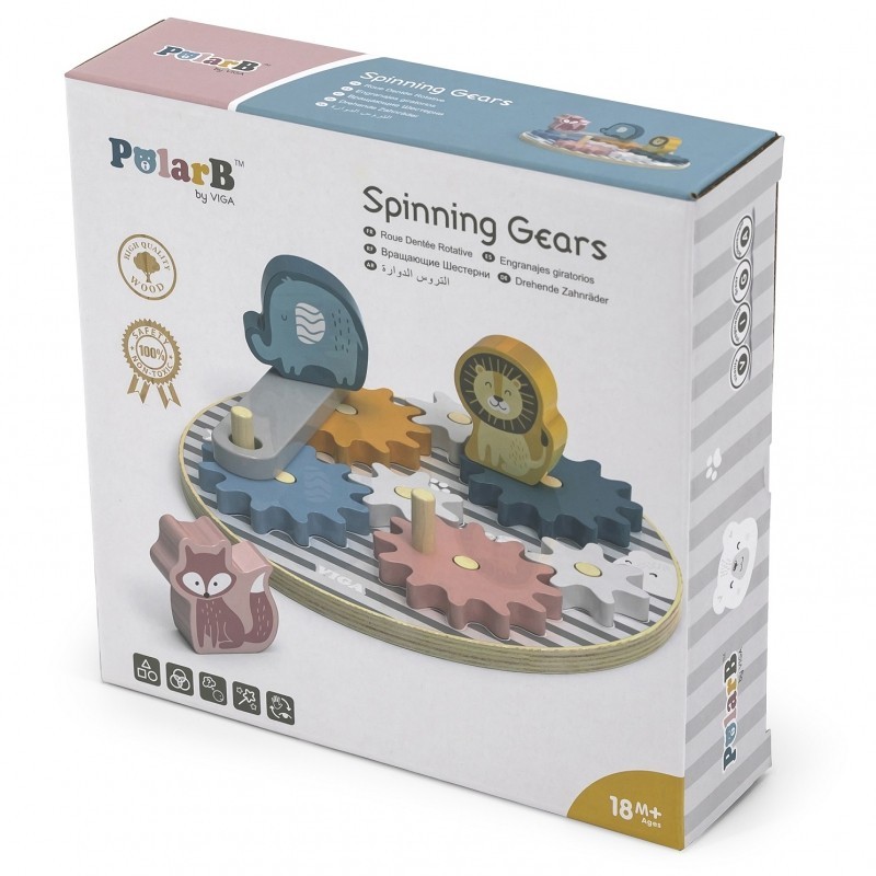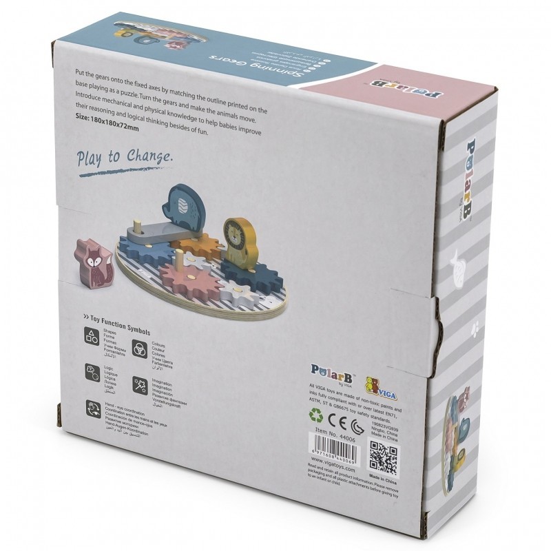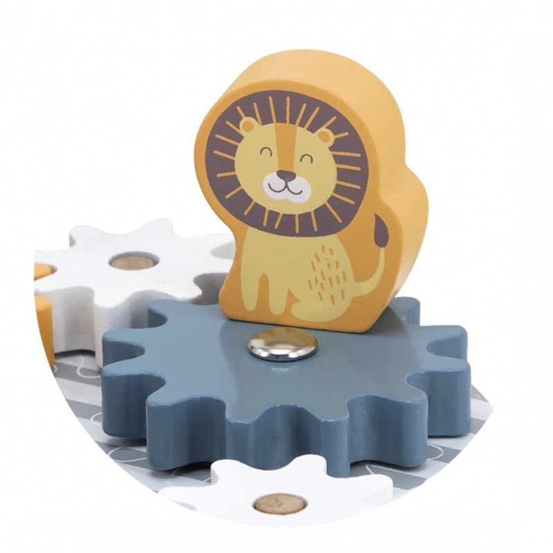 Drewniane zębatki ze zwierzątkami od renomowanej marki Viga są idealną zabawką dla dzieci, które chcą odkrywać otaczający ich świat. Precyzyjnie wykonane elementy pozwolą poznać dotykiem każdy szczegół umieszczonych figurek zwierzątek - głównych bohaterów serii PolarB. Zabawka pomoże w poznaniu podstawowych praw fizyki - działanie koła zębatego. Przy zakręceniu pierwszym kołem następuje wprawianie dalszych elementów w ruch i przekazywanie siły kolejnym zębatkom.