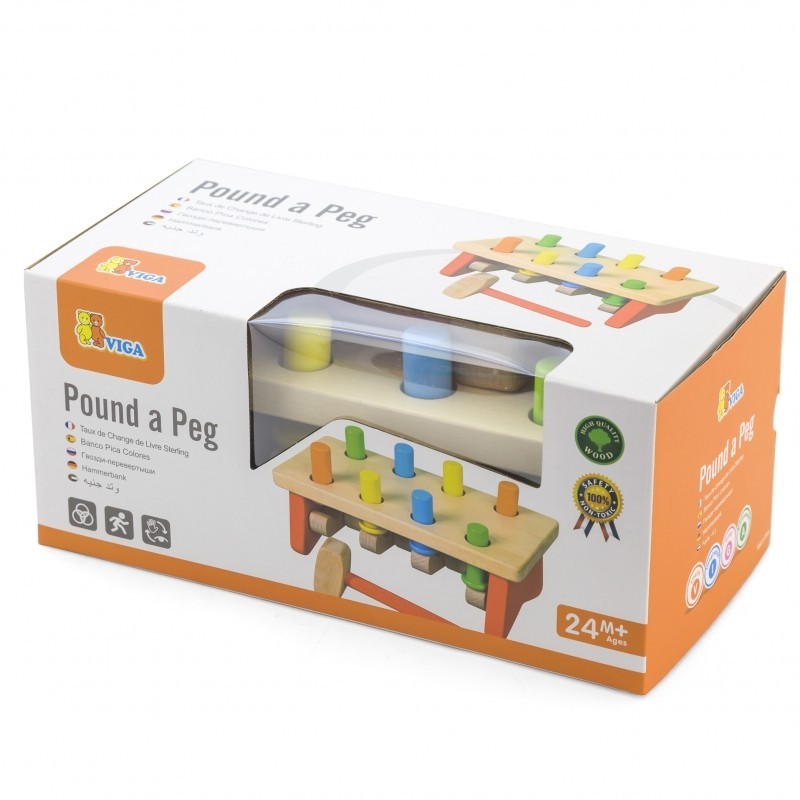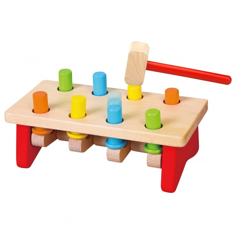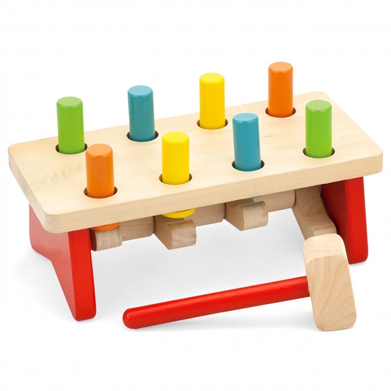 Drewniana Przebijanka Z Młotkiem to świetny produkt od znanej i cenionej marki Viga. W zestawie znajdziemy drewnianą przebijankę w formie ławki z ośmioma otworami oraz młoteczek.