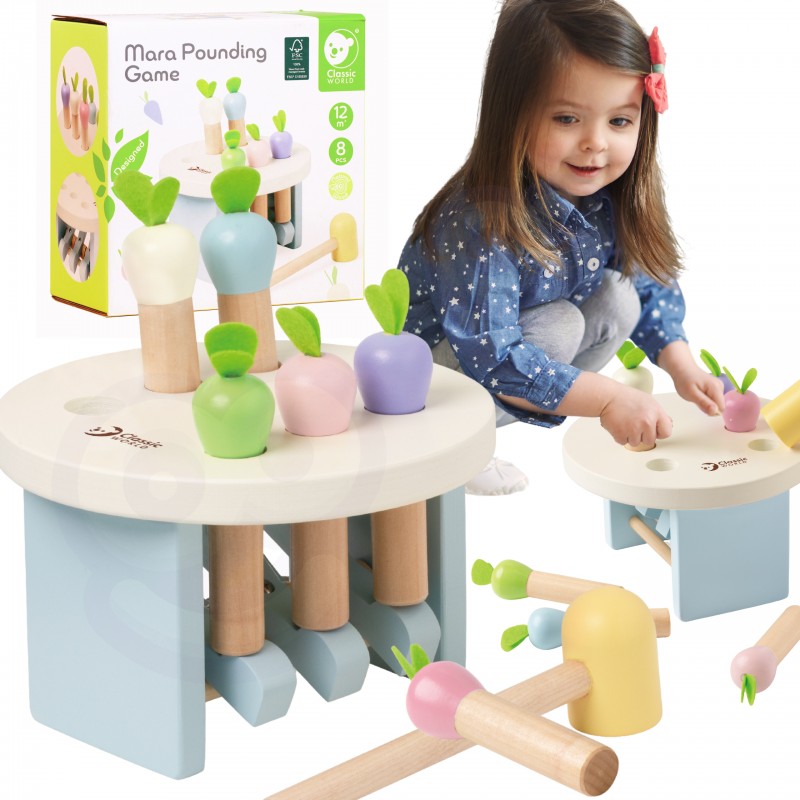 Gra zręcznościowa uderz – marchewkę od marki Classic World to rewelacyjna gra, która rozwija refleks, spostrzegawczość, zdolności manualne oraz zmysł wzroku. Gra polega na jak uderzeniu marchewki, która jest wystawiona. Czym mocniej uderzysz tym większa szansa na to żeby marchewka wyleciała.