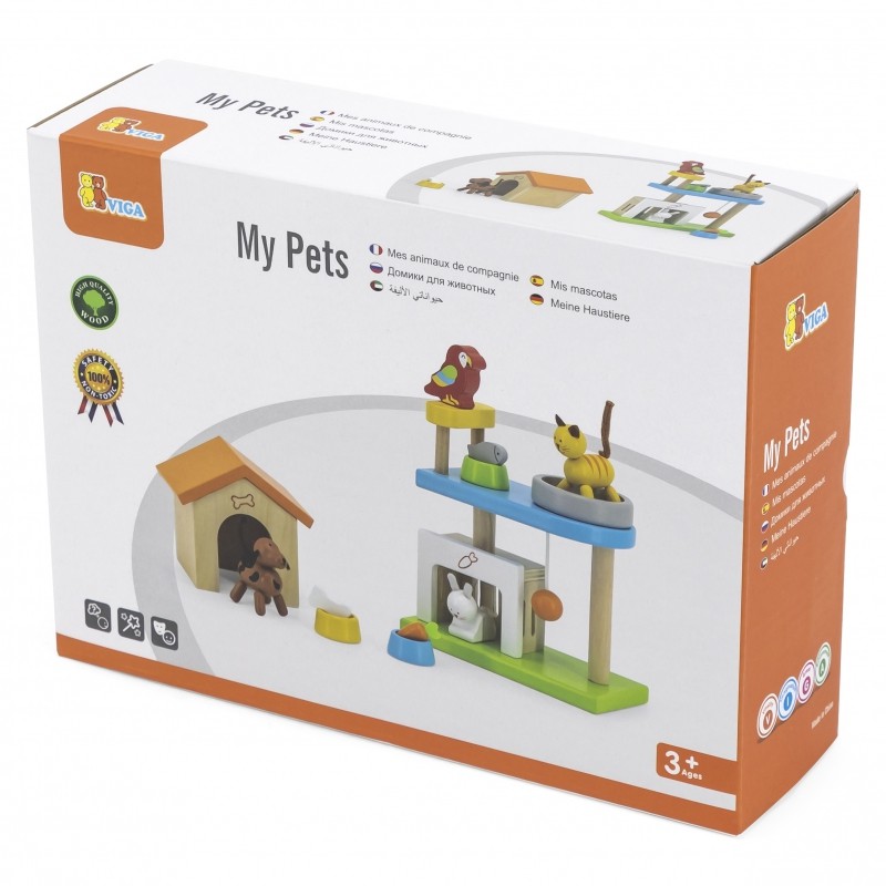 Drewniany zestaw zwierzątek to idealny dodatek do każdego domku dla lalek. W zestawie znajdziemy różne zwierzątka - uroczego szczeniaka, kotka, zajączka, papugę oraz ich domki i mini plac zabaw. Dzieci uwielbiają wymyślać historie, a ten zestaw to doskonały sposób na poruszenie u dzieci wyobraźni, kreatywności.