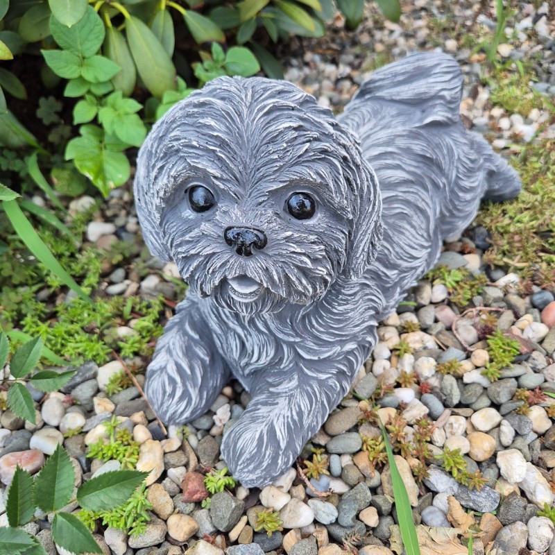 Ozdobna figurka ogrodowa Piesek-York leżący