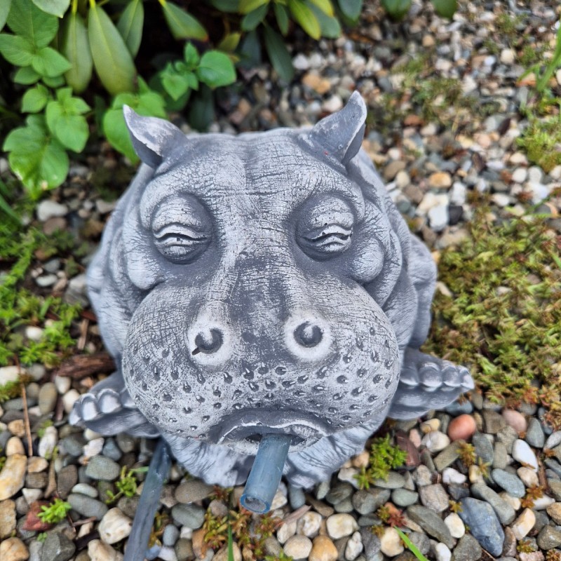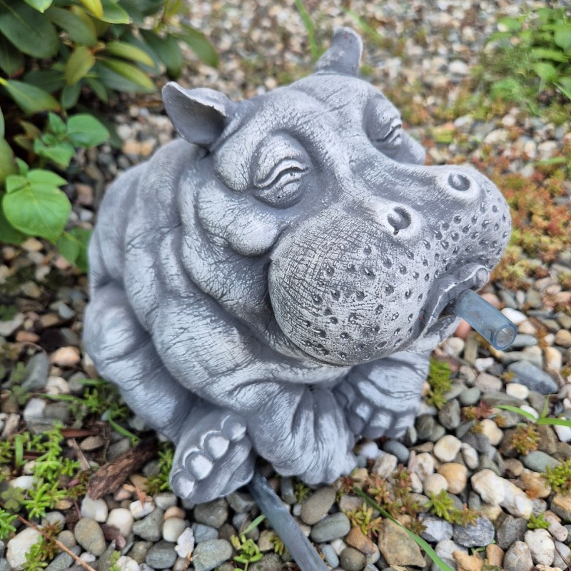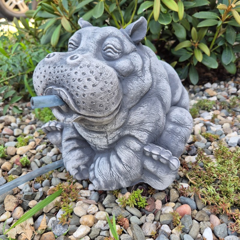 Ozdobna figurka ogrodowa Hipopotam z możliwością podłączenia do wody. Wspaniała dekoracja w ogrodzie nad oczkiem wodnym