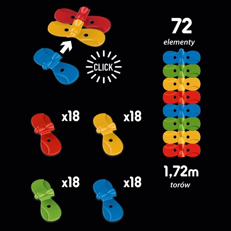 Zestaw ten daje możliwość stworzenia elastycznych torów, dzięki którym możesz przeżywać zapierające dech w piersiach zjazdy, niesamowite pętle, ekscytujące zakręty i wiele innych. Niezależnie od tego, czy są to pętle, ekstremalne nachylenia, ekscytujące spirale czy ciasne zakręty - z torem wyścigowym Smoby Flextreme już nigdy nie będzie nudno. Elastyczny i modułowy tor wyścigowy zapewnia szalone trasy i emocjonujące przejazdy w pokoju dziecięcym.
