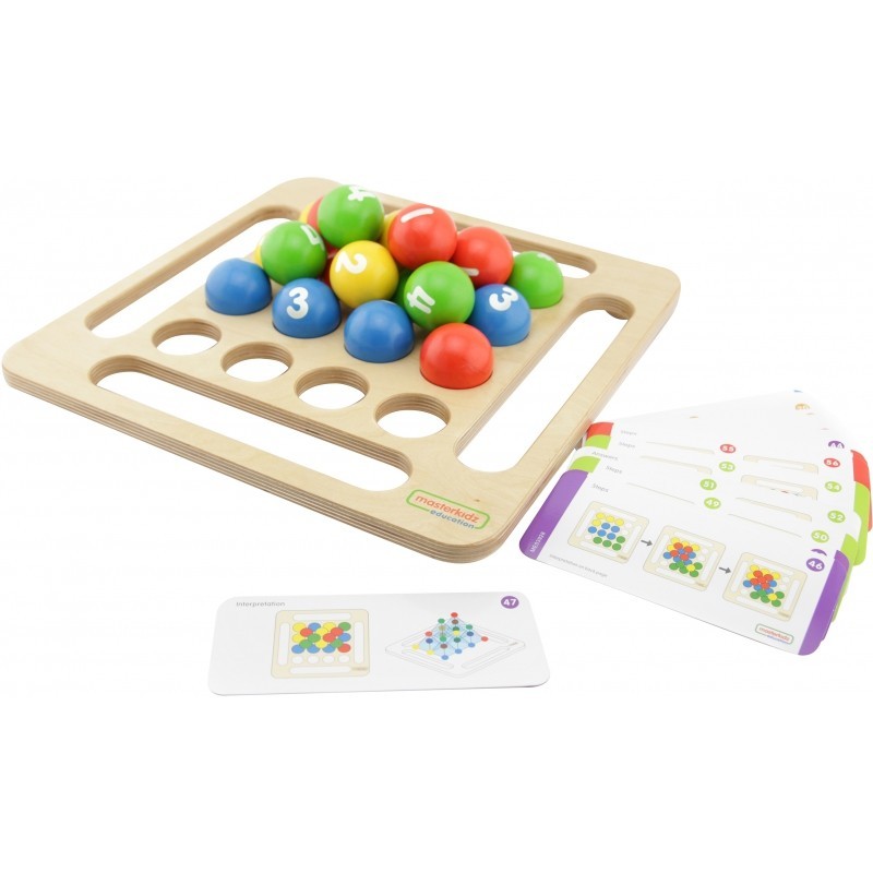 Zestaw składa się z drewnianej planszy z otworami, woreczka na kulki oraz z 20 kolorowych piłeczek drewnianych, które należy układać w odpowiednie schematy. Gra zawiera 36-stronową instrukcję, która objaśnia zasady gry. Instrukcja posiada 5 rozdziałów z 3 poziomami.