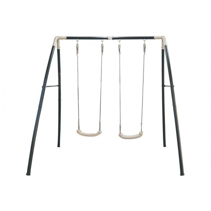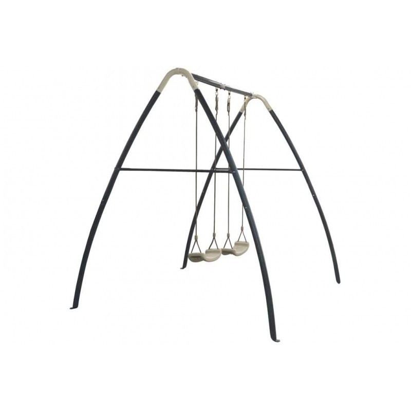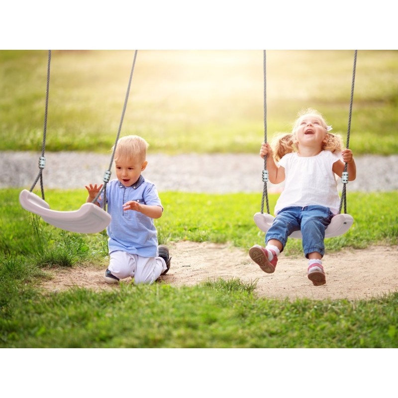 W zestawie znajdują się 4 kotwy, które zapewniają trwałe mocowanie huśtawki do podłoża. Siedziska zostały wykonane z wysokiej jakości tworzywa odpornego na warunki atmosferyczne oraz promieniowanie UV. Wysokość każdego siedziska można regulować.