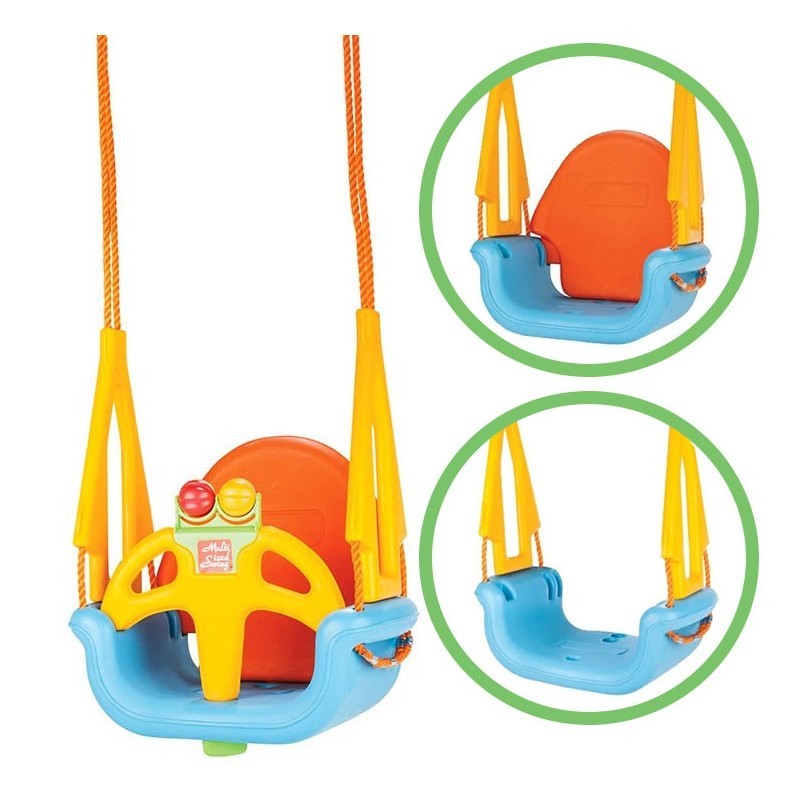 Dzięki zdejmowanej osłonie na nóżki i zdejmowanemu oparciu huśtawka będzie idealna również dla starszych dzieci. Produkt ma 3 opcje użycia: huśtawka dla dziecka z oparciem i osłoną na nóżki, huśtawka z oparciem lub huśtawka bez oparcia. Z biegiem czasu gdy dziecko rośnie, części huśtawki można w łatwy sposób demontować.
