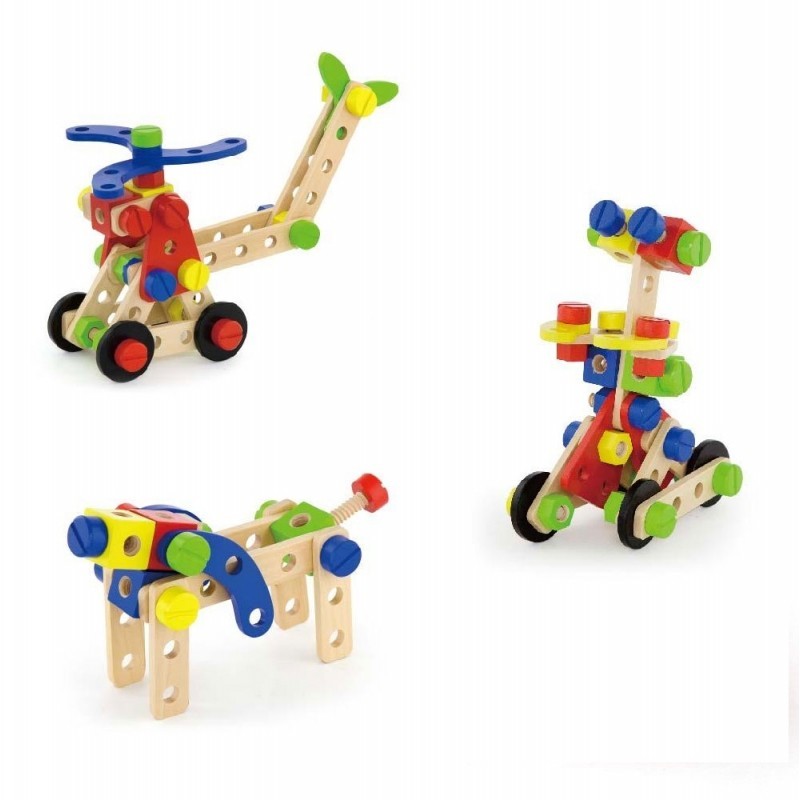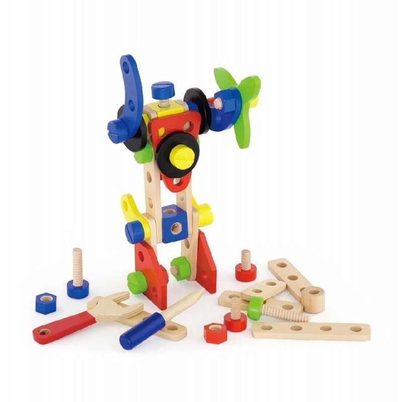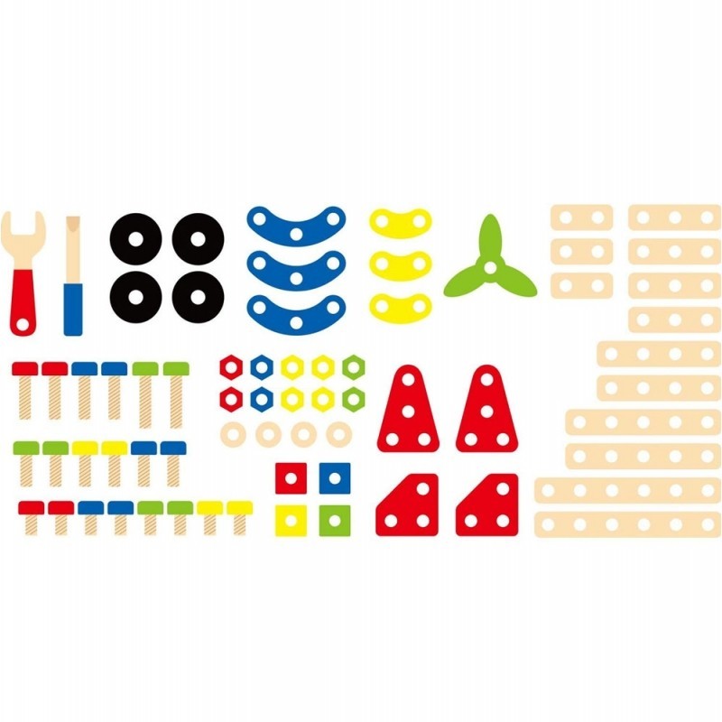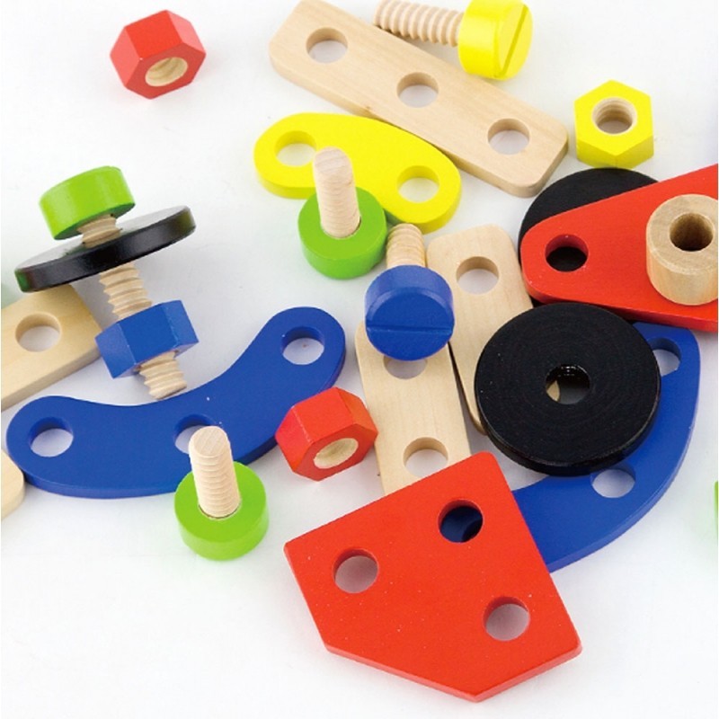 Całość wykonana została z drewna lakierowanego i pomalowana nie toksycznymi farbami w żywe barwy, które zadowolą każdego użytkownika i dadzą mnóstwo radości z zabawy.