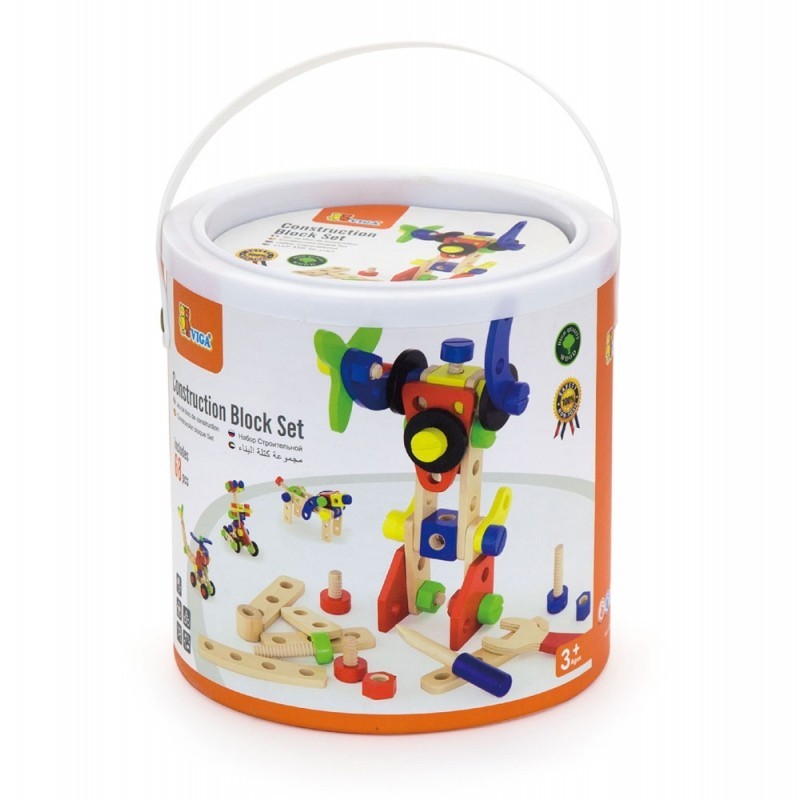 Klocki znajdują się w poręcznym wiaderku, które umożliwi zachowanie porządku w każdym dziecięcym pokoju oraz ułatwi ich transportowanie.