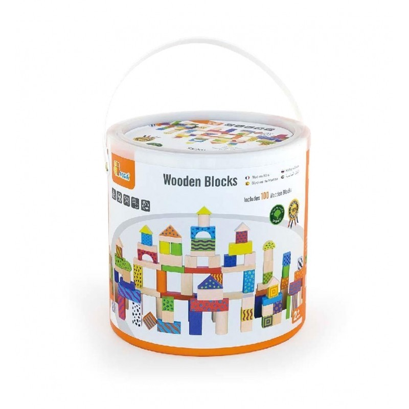 Drewniane, kolorowe klocki od firmy Viga, sprawią mnóstwo radości i zajmą dziecko zabawą na wiele godzin. Zestaw zawiera aż 100 elementów, z których można różne wersje kolorowego miasta, a pomoże w tym książeczka z instrukcjami, która dołączona jest do zestawu. Zabawka ta rewelacyjnie wpłynie na rozwój malucha – poprzez wyśmienitą zabawę będzie kształtowało precyzję ruchów rączek, poprawi koordynację wzrokowo – ruchową. Dodatkowo całość zapakowana jest w wiaderko, które umożliwi utrzymanie porządku w każdym dziecięcym pokoju oraz ułatwi przenoszenie całego zestawu.