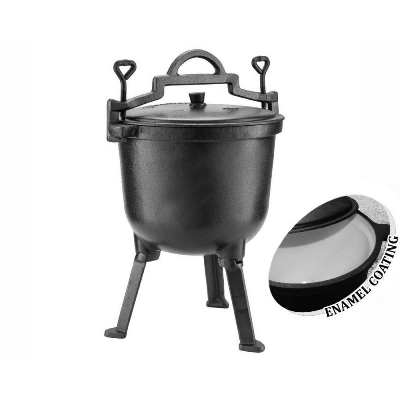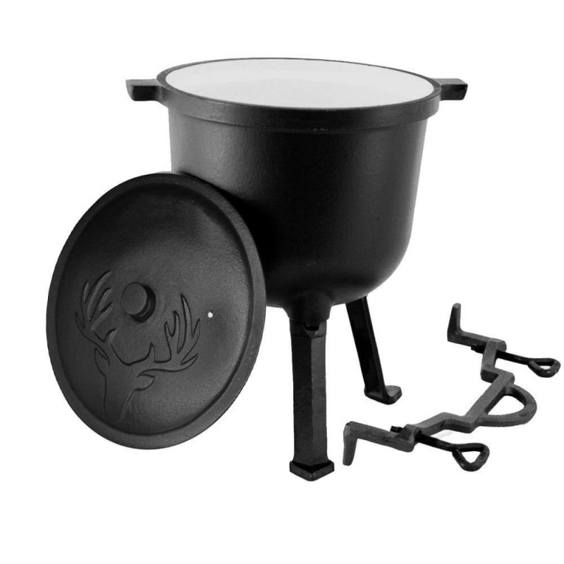 Kociołek emaliowany żeliwny myśliwski o pojemności 11L firmy ZILNER wykonany z żeliwa szarego, oksydowany z zewnątrz oraz emaliowany wewnątrz.