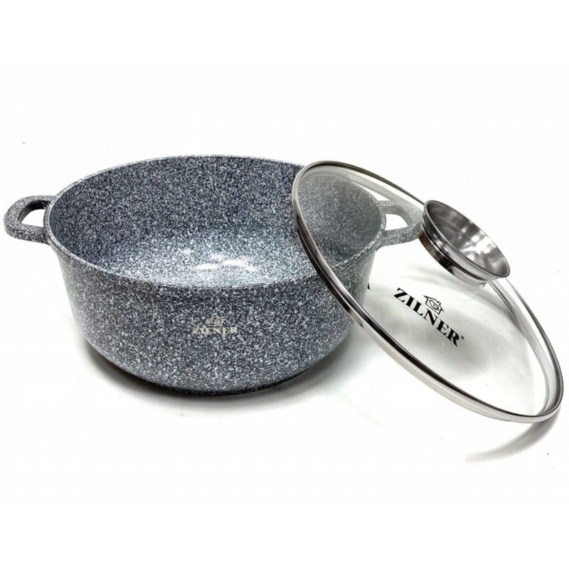 Granitowa / marmurowa powłoka sprawia, że naczynia są wyjątkowo odporne na wszelkie zarysowania i trwałe. Ten typ garnków i patelni pozwala również na smażenie przy użyciu minimalnej ilości tłuszczu, ponieważ naczynie rozgrzewa się podobnie do kamienia i oddaje ciepło całą swą powierzchnią.