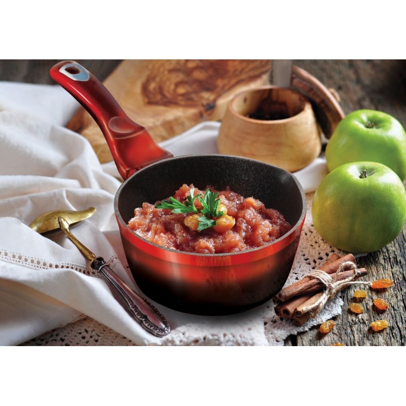 Granitowa powłoka sprawia, że naczynia są wyjątkowo odporne na wszelkie zarysowania i trwałe. Ten typ garnków i patelni pozwala również na smażenie przy użyciu minimalnej ilości tłuszczu, ponieważ naczynie rozgrzewa się podobnie do kamienia i oddaje ciepło całą swą powierzchnią.