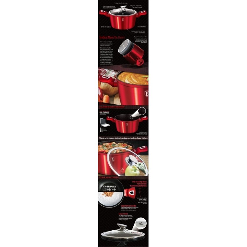 15-elementowy zestaw garnków BERLINGER HAUS z serii METALLIC LINE - BURGUNDY (RED line) (model '2018)