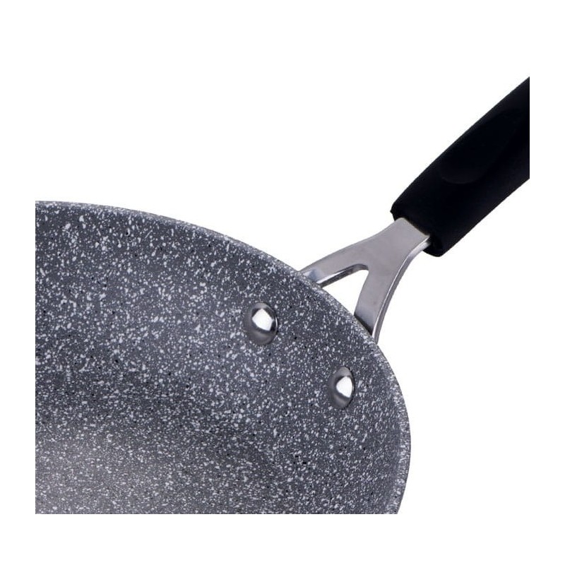 Granitowa powłoka sprawia, że naczynia są wyjątkowo odporne na wszelkie zarysowania i trwałe. Ten typ garnków i patelni pozwala również na smażenie przy użyciu minimalnej ilości tłuszczu, ponieważ naczynie rozgrzewa się podobnie do kamienia i oddaje ciepło całą swą powierzchnią.